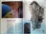 *Equipement : « Deux âges » est une ancienne voie d’artif équipée en A0 par de vielles chevilles rouillées et tournantes et des bons pitons. Cependant cette première partie a été complétée de quelques goujons de 12mm. « Trois chevaux » est entièrement équipée de goujons de 12mm (7a obligatoire), l’espacement entre les points et très correct et ceux-ci sont bien placés. Tous les relais de l’ensemble de la voie sont sur goujons.