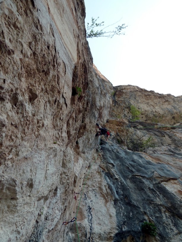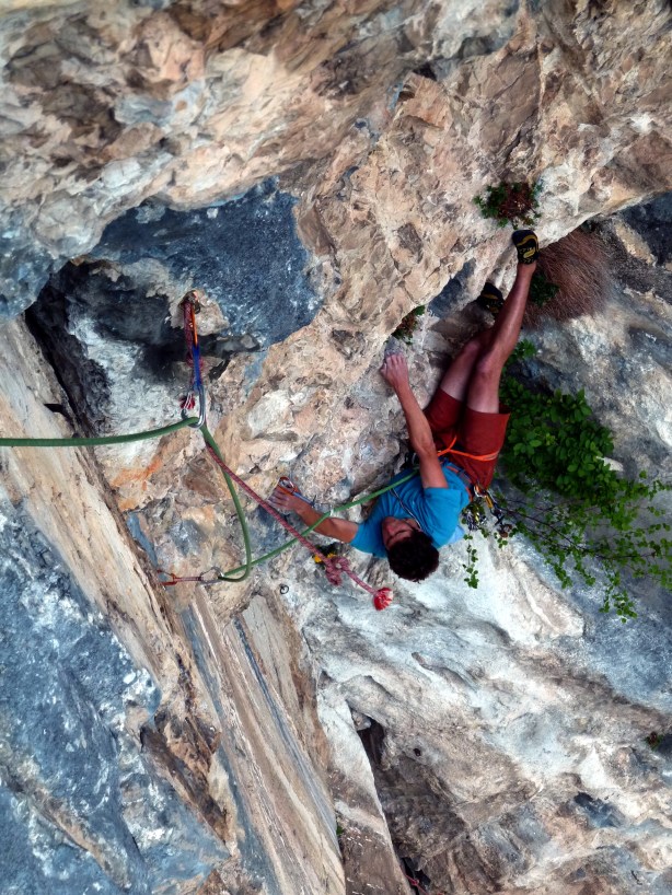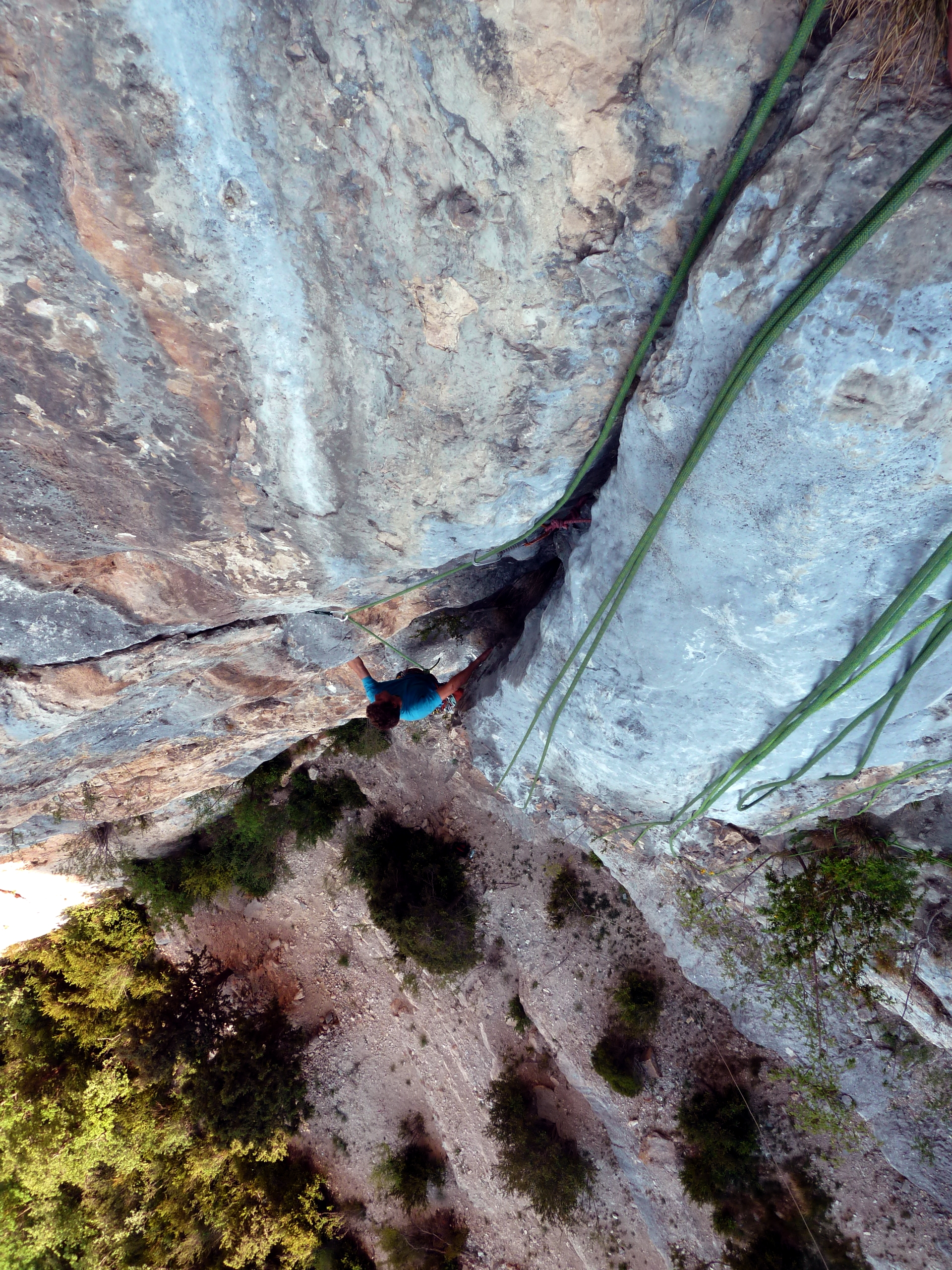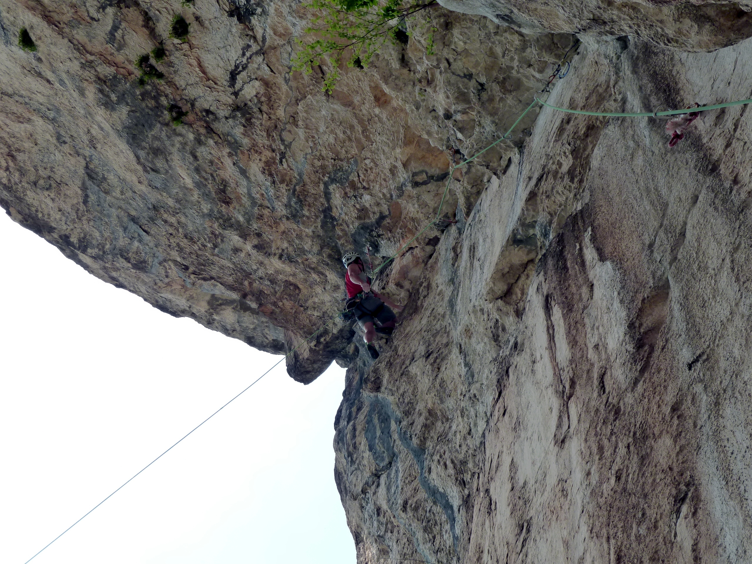 L9 : 7b, 30m. Une première section super sculptée avec de grosses prises adhérentes ! Un petit pas physique ensuite pour passer le bombé puis relais à droite sous le toit. Superbe longueur !