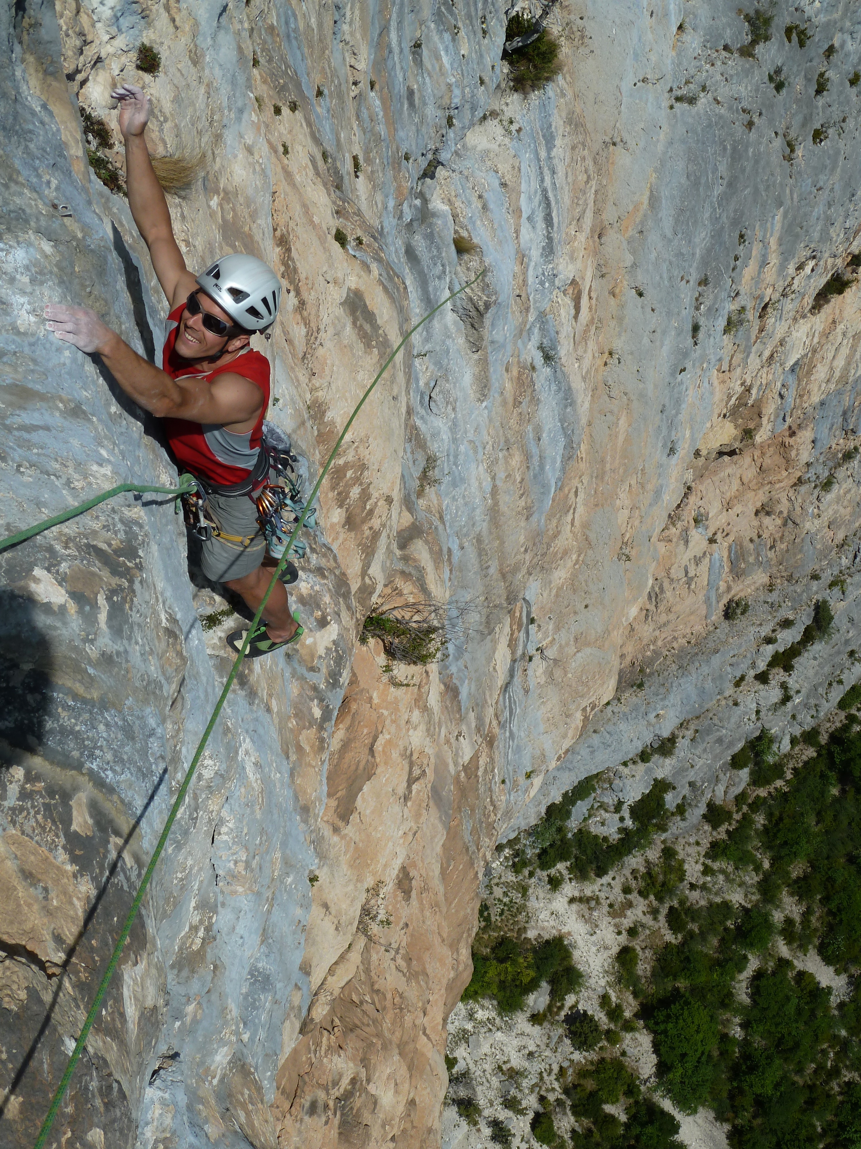 *Commentaires : Une voie des plus déversantes de France, grande ambiance et rocher magnifique. Conti et physique requis car c’est une voie longue, physique et soutenue. Nous avons opté pour la méthode de leader fixe et le hissage de sac pour la première et deuxième partie, ce qui permet d’attaquer les longueurs en étant reposé. Descente en rappel déconseillé notamment pour « Deux âges ».