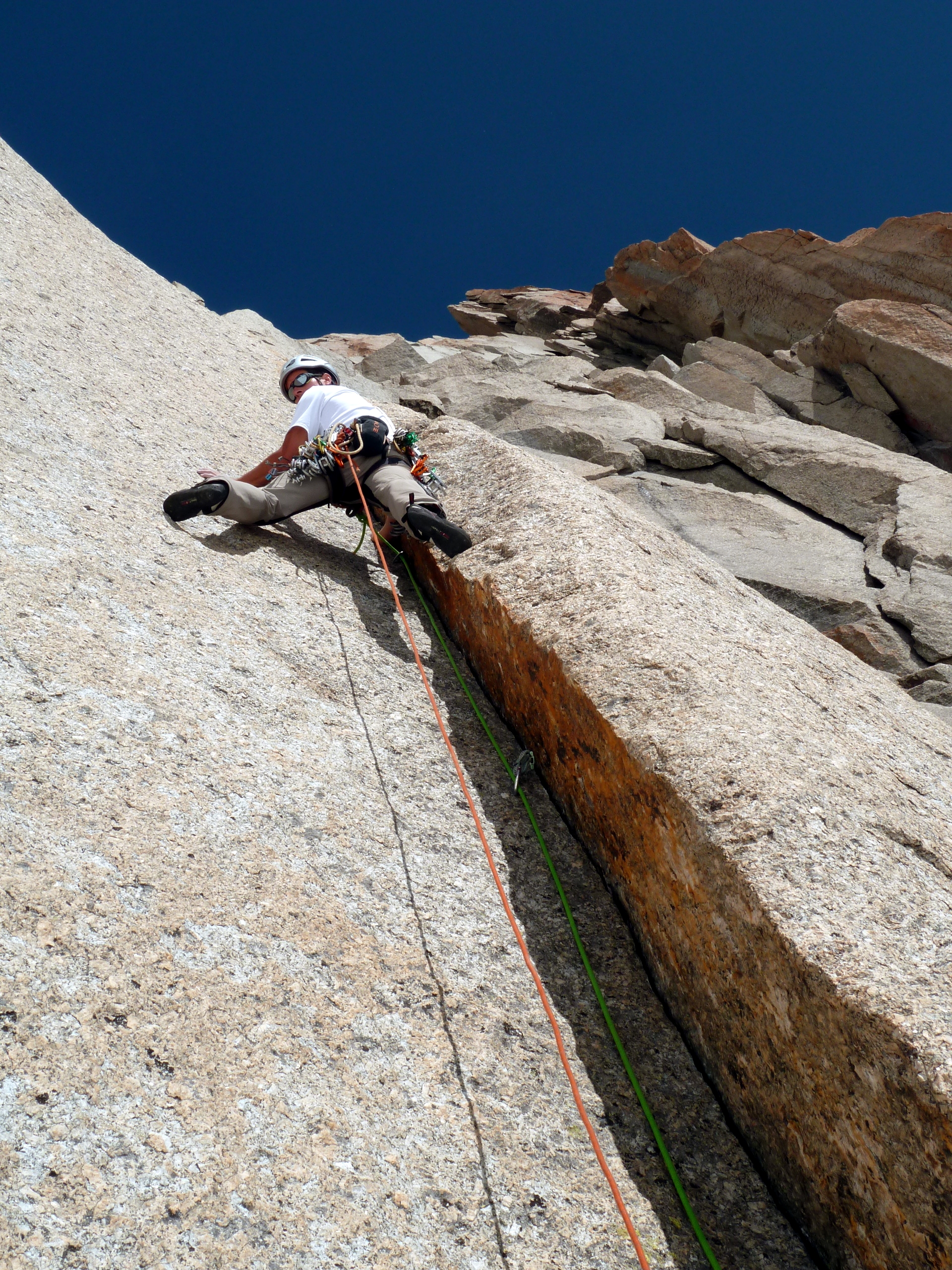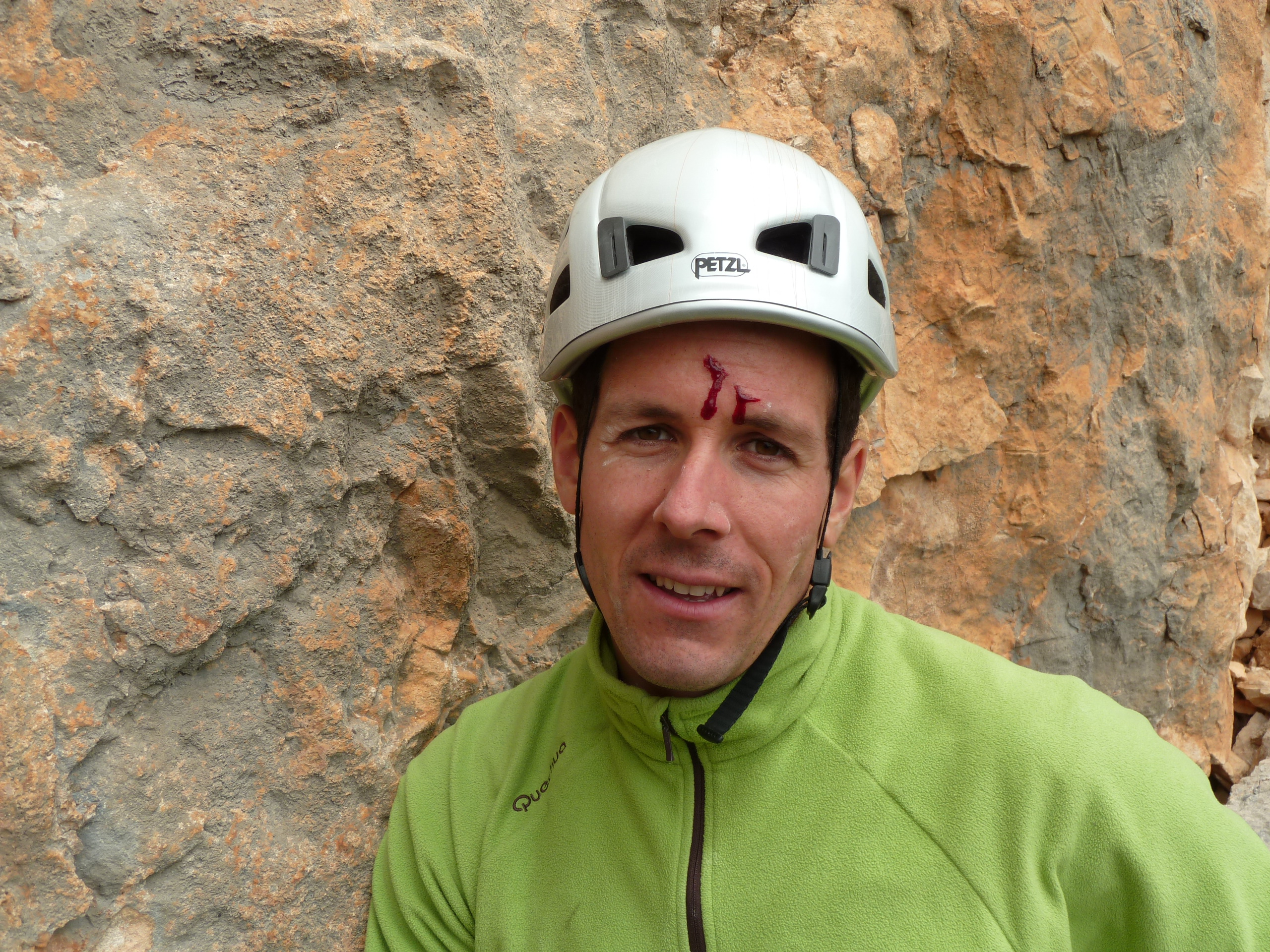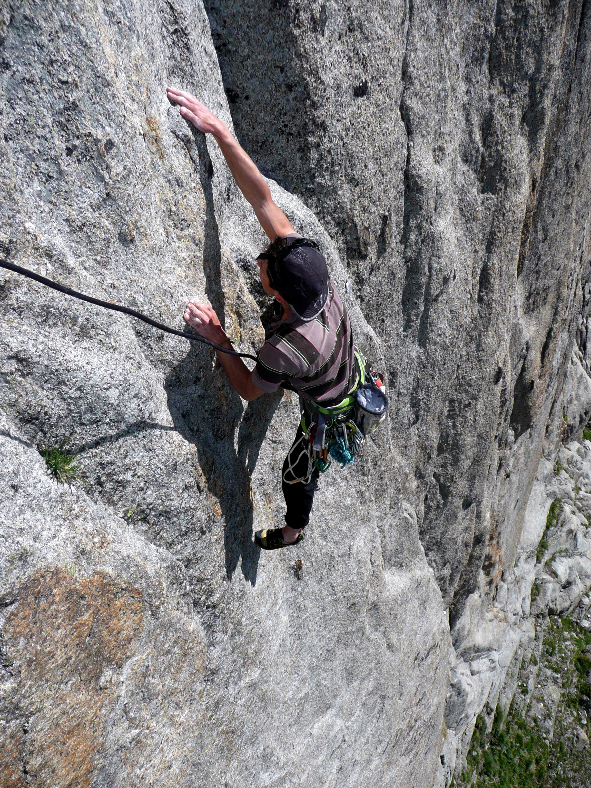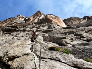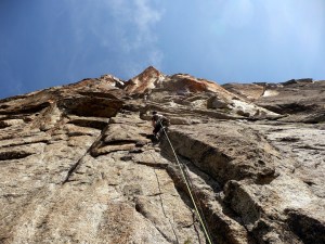 La troisième longueur m’a valu une cicatrice au front en arrachant la prise du crux, çà passe en A0 maintenant…