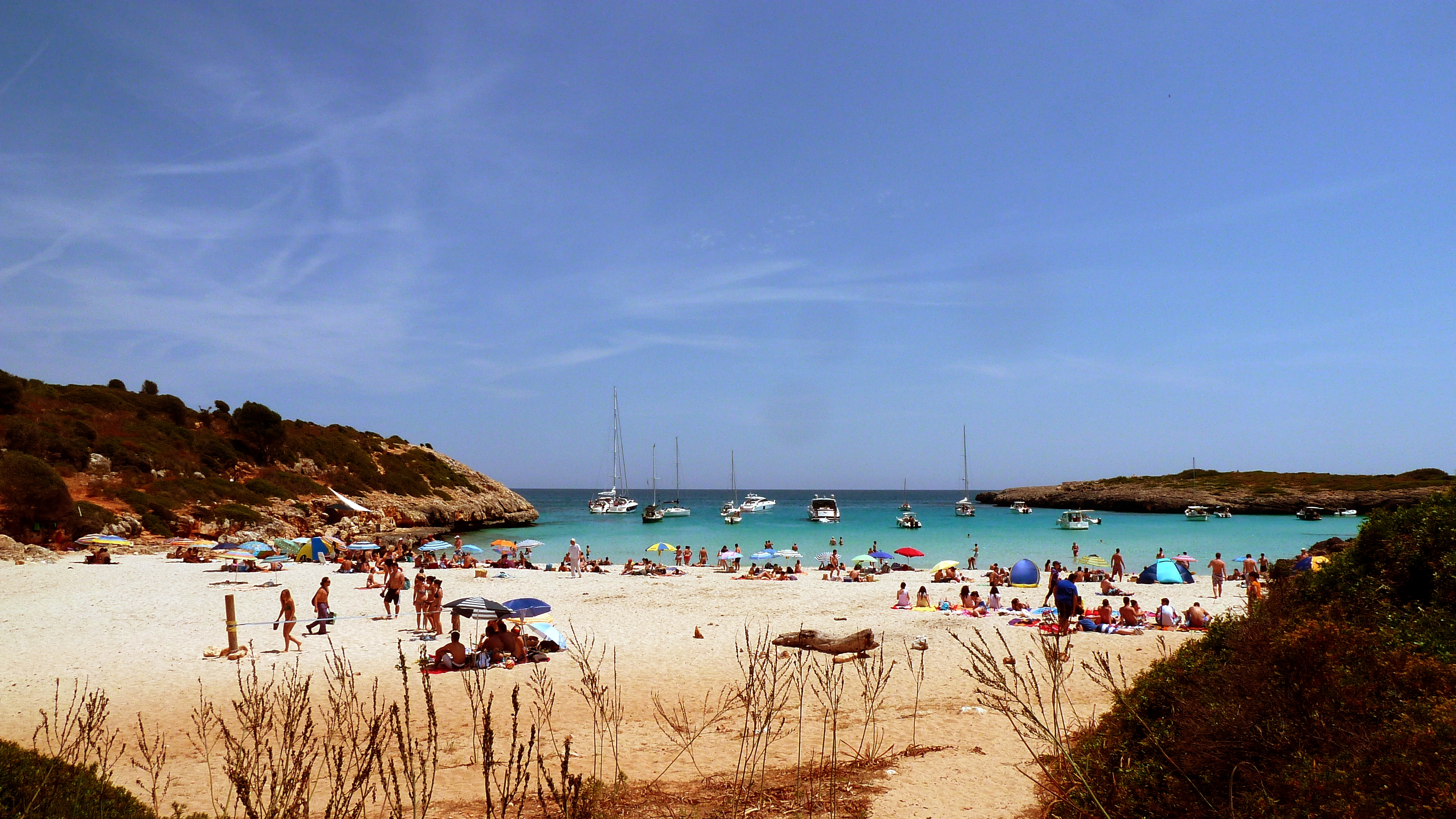 – s’Estanyi d’en mas (cala Romantica): longue plage, mais pas très large, dans une calanque. Des hôtels et villas sur les bords, mais pas trop gênants. (très exposée au vent)