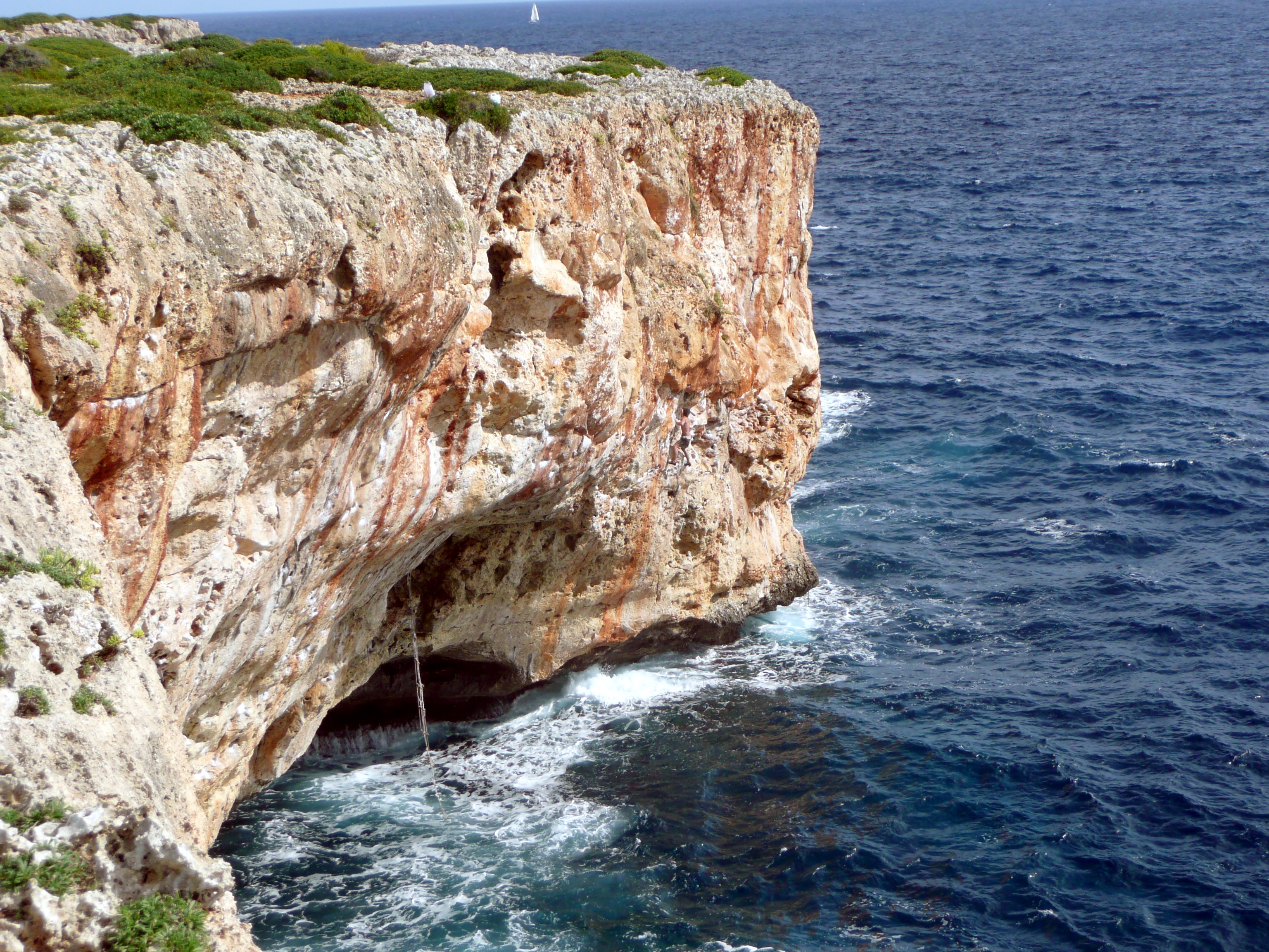 – Porto Colom, du bon gros dévers. Une grosse voute à deux étages, du gros dévers en général. La deuxième partie est un peu dangereuse car on peut toucher la première en tombant au début.