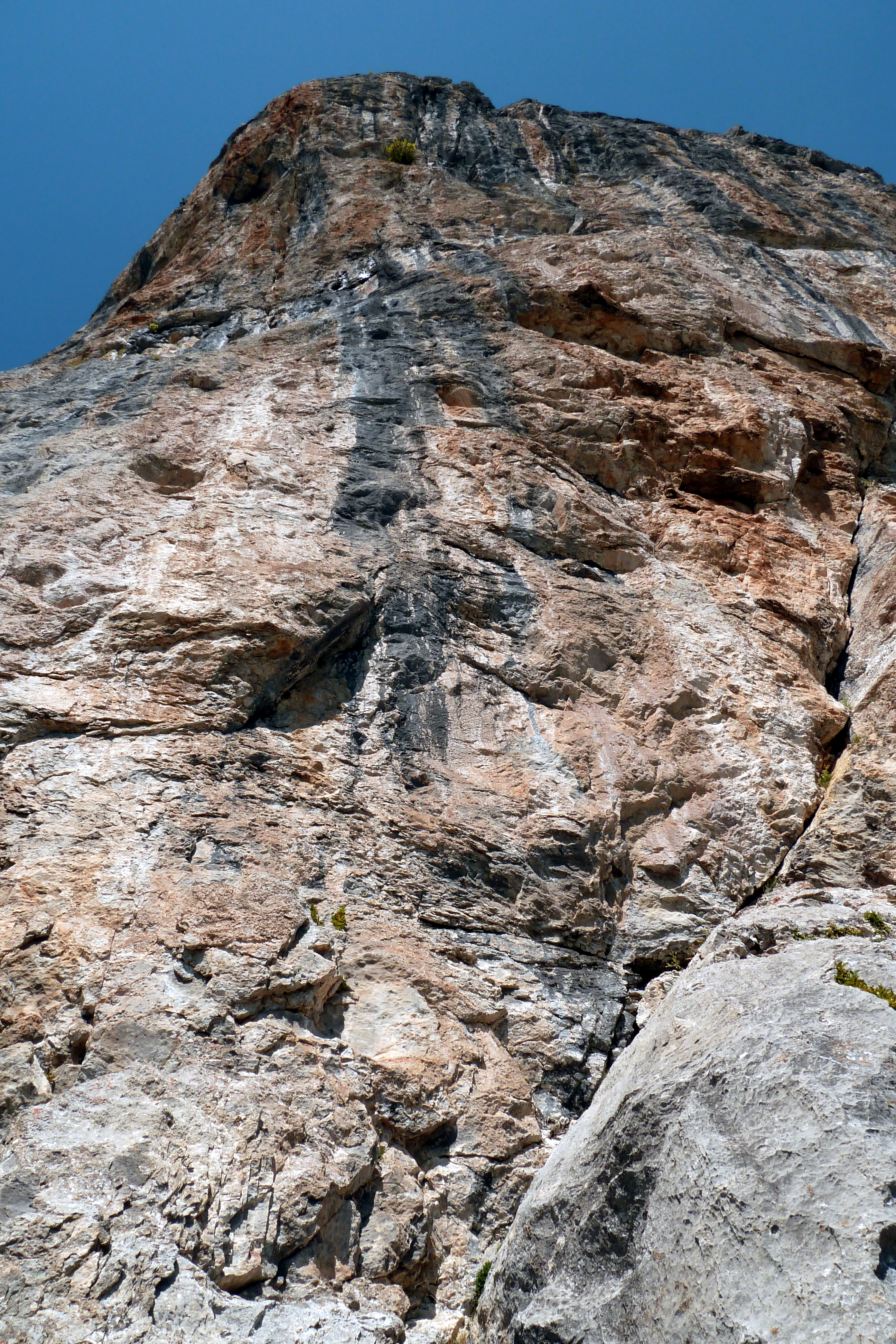 Les deux première longueur ne sont pas les plus majeures mais on le mérite de bien chauffer pour la suite. Les deux longueurs du milieu (6c+ et 7a+) méritent vraiment le détour ! Une escalade très exigeante à vue sur un rocher finement sculpté de gouttes d’eau et autres cadeaux de la nature.