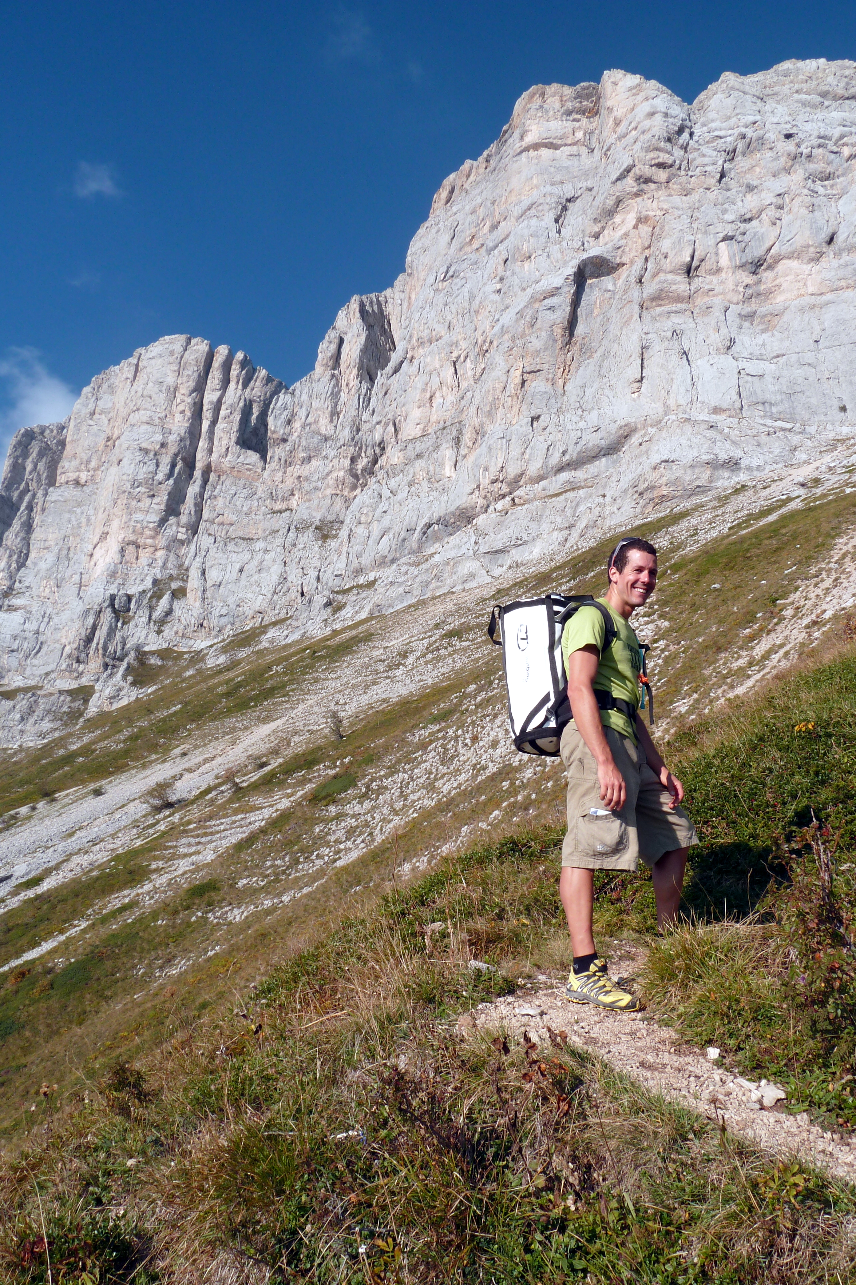 J’ai eu la chance pour cette voie de faire cordée avec Mick. Ce gars est un vrai boulimique de grandes voies depuis plusieurs années, avec 4 grandes voies en moyenne par semaine il écume tout ce qui peut se faire de classe dans les Alpes !! N’aller pas sur son blog, vous allez être dégouté tellement qu’il en a fait et surtout qu’il fait tout le temps des grandes voies majeures ! 🙂