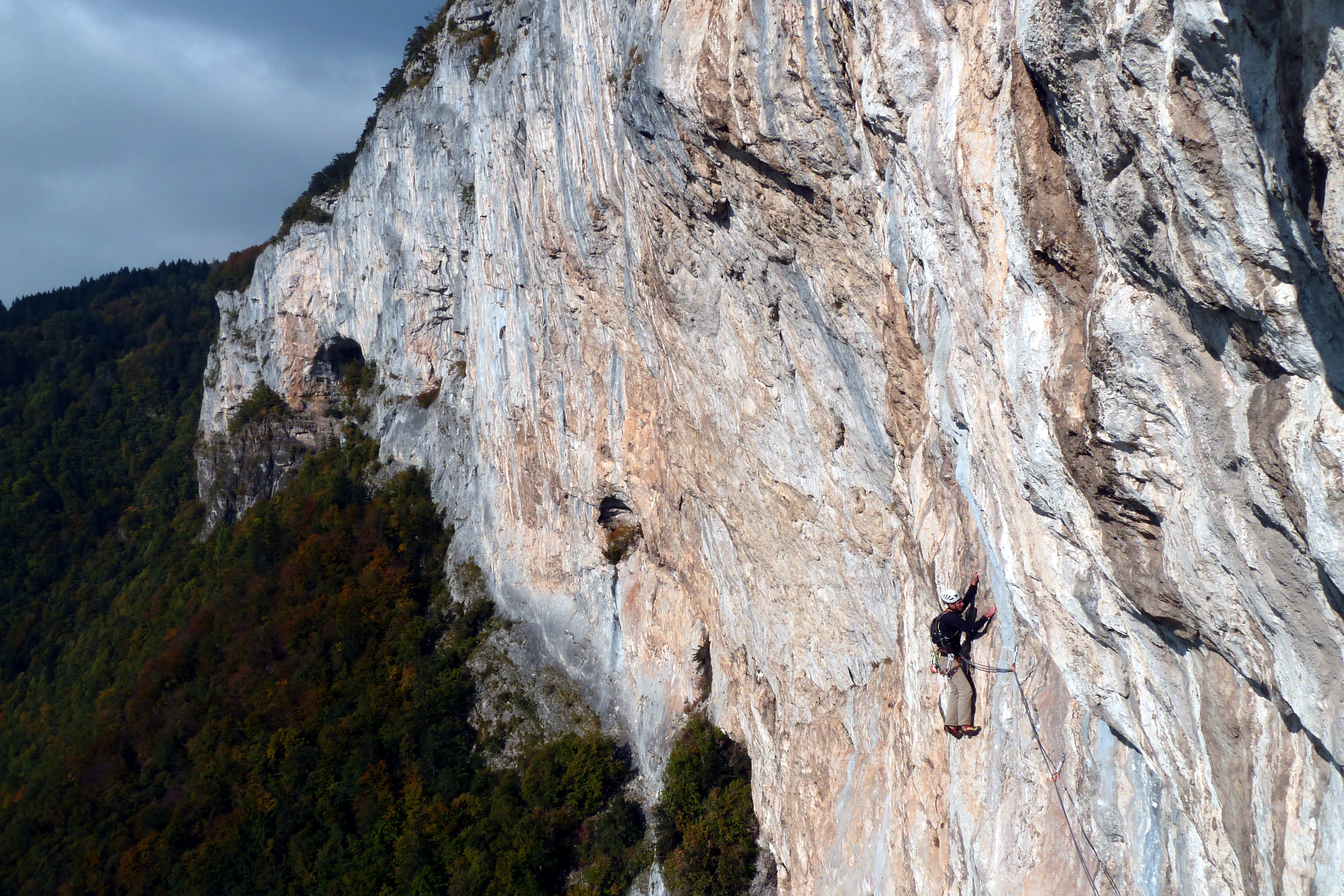 Un mythe à faire même si on n’aime pas la dalle. En fait, il faut dire que les premiers 400m ne sont pas vraiment très dalleux, je dirais plutôt du mur raide bien technique où il faut quand même savoir tenir les prises ! Les cotations de cette première partie oscillent entre 6c et 7a avec une dernière en 7b (pas facile à vue).