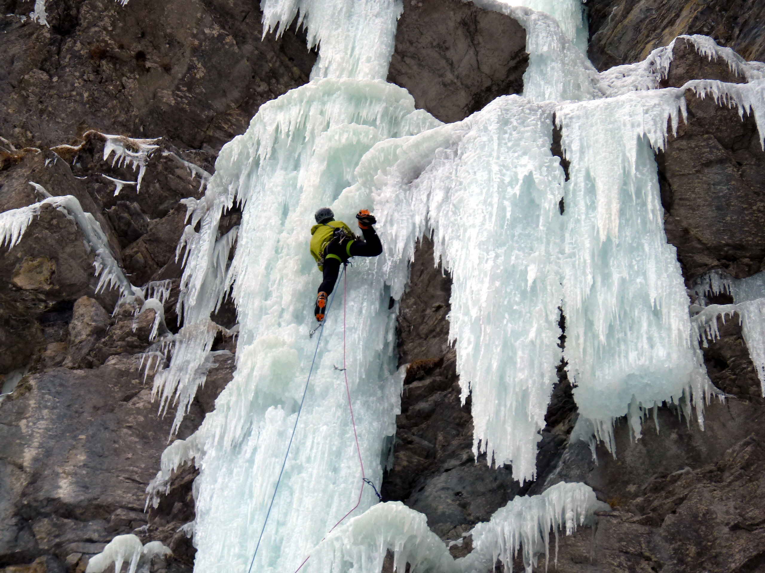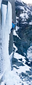 Du coup on fera sa voisine de gauche, ILynx, 4 longueurs verticales de 30m en 5+ dans de la glace parfaite et bien crochetante avec quelques passages bien humides.