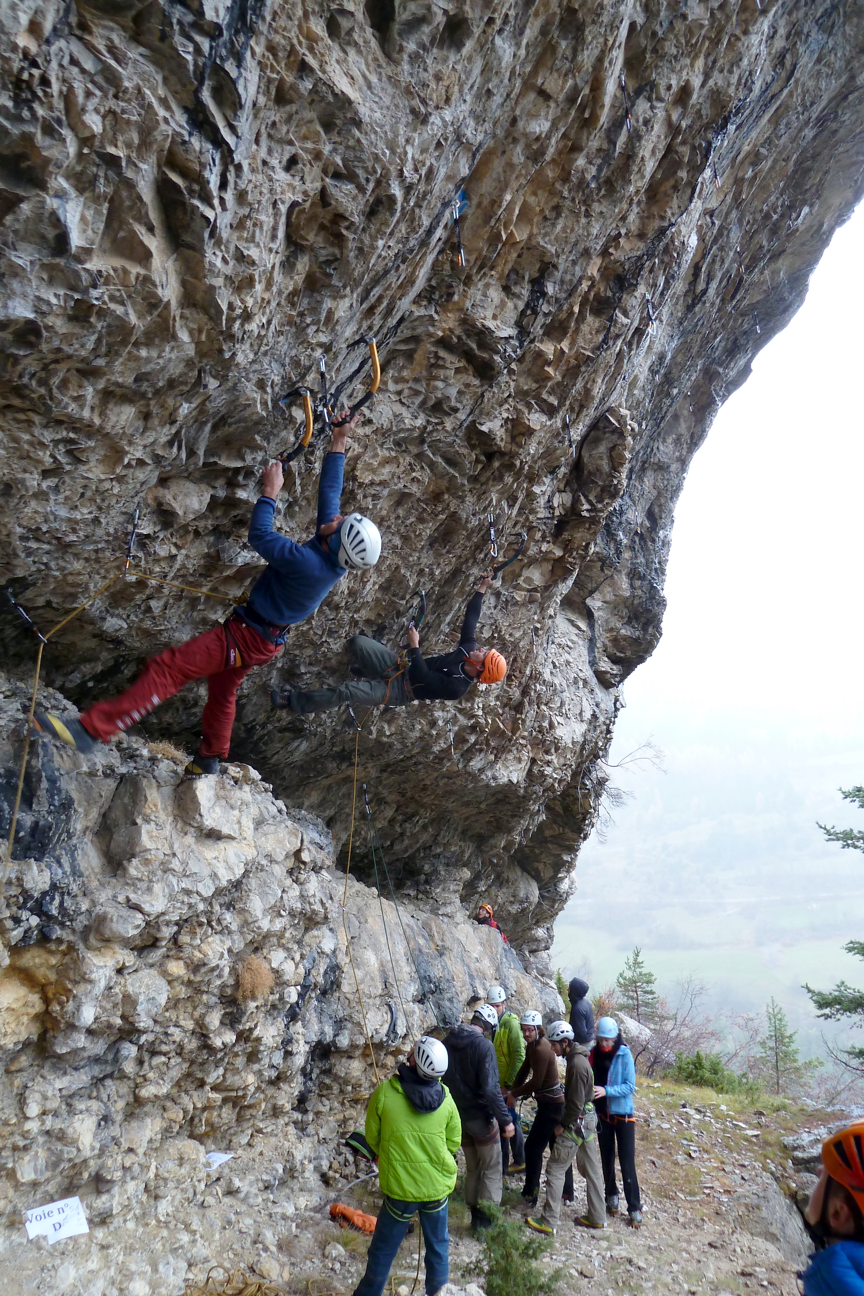 Cette année nous avons voulu tester cette étape sur deux jours. Malheureusement le format de celle-ci n’était pas adapté aux conditions météo ! Promis, on essayera de faire mieux l’année prochaine. Le premier jour était dédié aux qualifications et le second aux finales avec un essai de travail de la voie pendant 10min puis un essai d’enchainement. Seul Eric (1er) sort la voie de finale et malheureusement les meilleurs prétendants ont manqué de réussite…