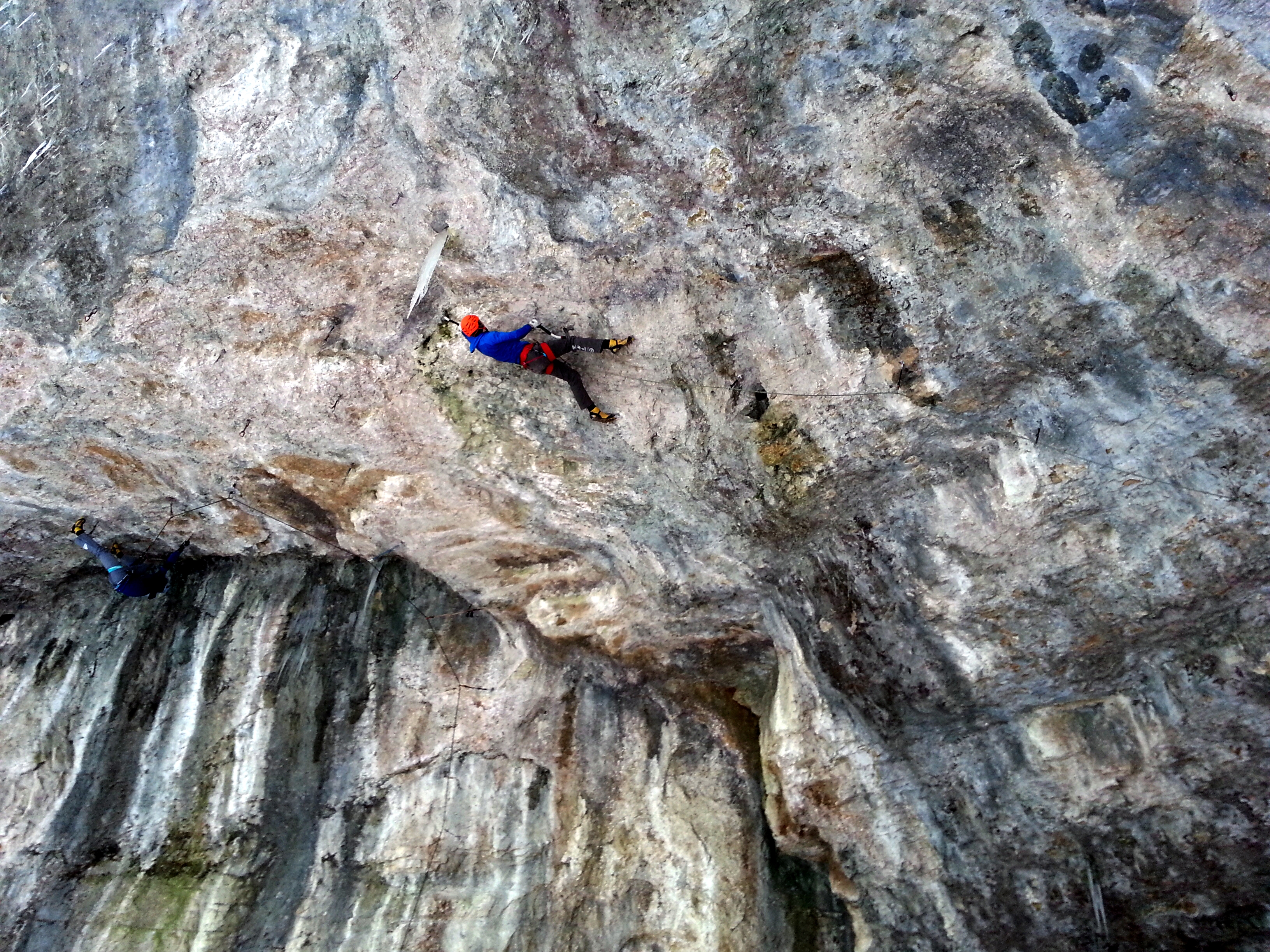 3 jours à parcourir les lignes que je n’avais pas faites il y a un mois et quelques essais dans la voie de dry la plus longue et la plus difficile du monde ! Je parle bien-sûr d’Ironman, D14. Je la décris pour les intéressés : 35m de grimpe pour 20 d’avancée, prises naturellement améliorées.