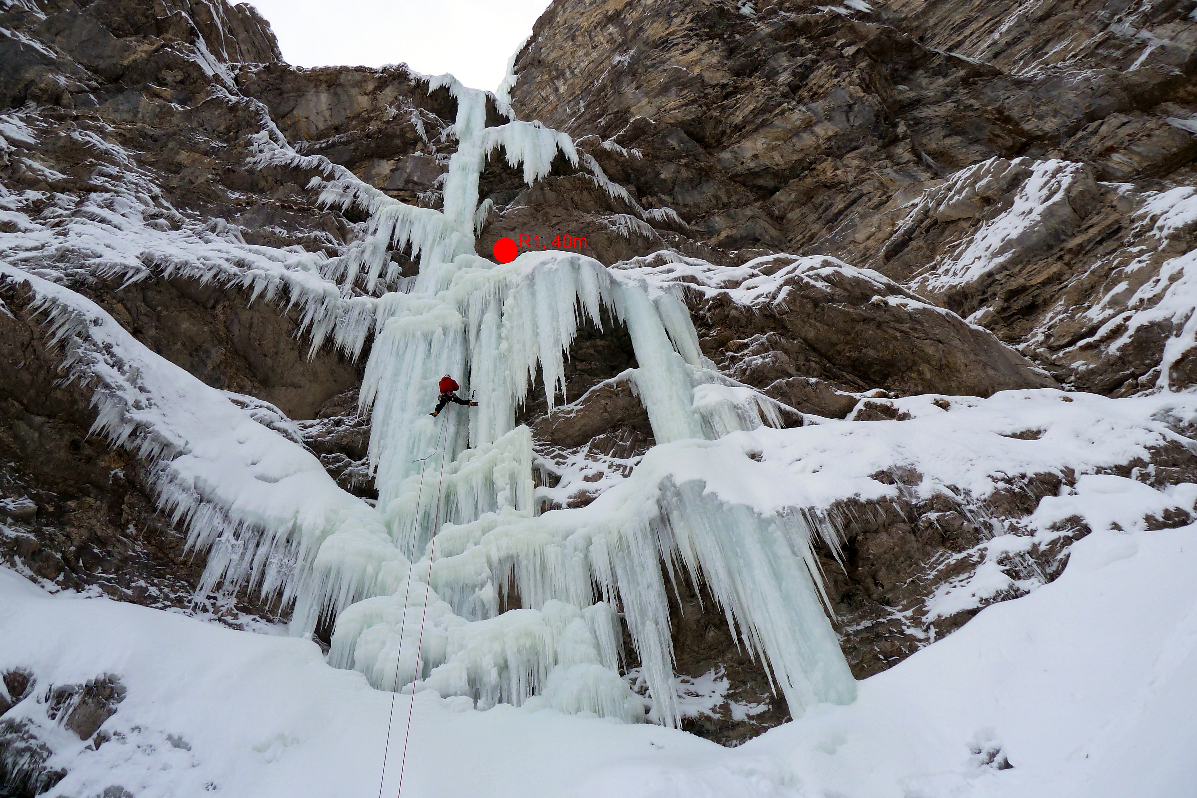 Grade 6+ quand même qui rentre dans mon top 10 des plus belles longueurs de glace. Merci aux ouvreurs !