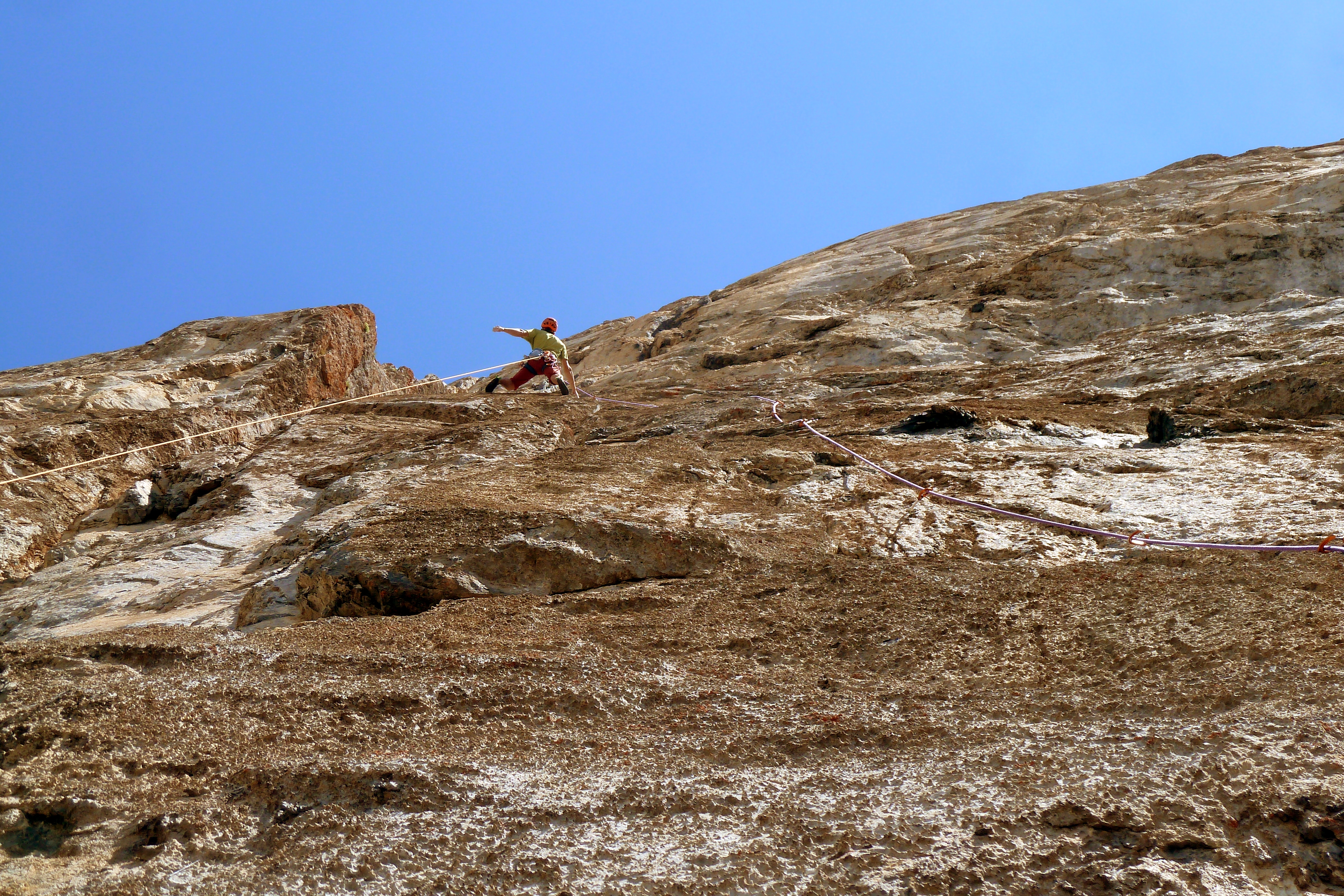 Au final, cette voie est vraiment très exigeante techniquement et j’ai trouvé qu’il valait mieux être grand pour ne pas trop galérer dans les sections difficiles. Physiquement il faut aussi tenir la route, nous avons fini avec des crampes de partout, mal aux pieds et plus de mental du tout ! Il est vraiment très dur de grimper dans ce style, notamment à vue. Je suis très content d’y être allé, ça faisait partie de mes projets d’aventure car n’ayant aucunes infos des éventuels répétiteurs ce n’était pas évident que le rocher ne soit pas si mauvais que çà et pas évident que les longueurs ne soit pas aussi grimpable que ça. Merci aux équipeurs déterminés Benoit Peyronnard et Philippe Mussatto.