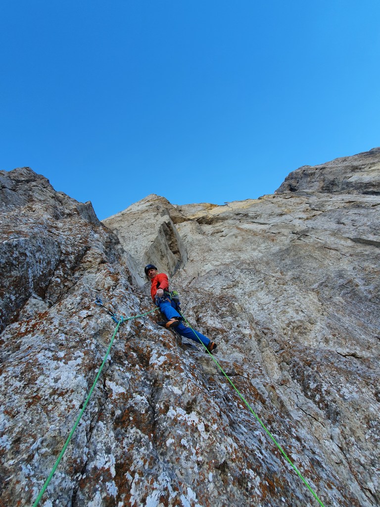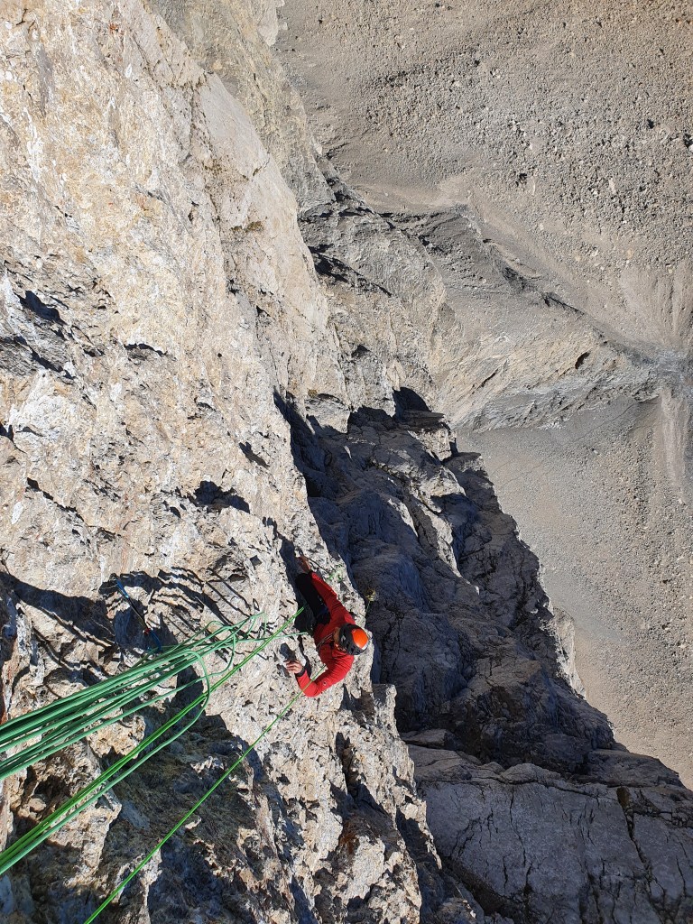 En tout cas, merci infiniment et respect à tous les ouvreurs qui ont osé se frotter à cette imposante face ! Sacré mission et motivation de passer au plus raide dans ce rocher parfois douteux. A ma connaissance c’est la voie Française la plus difficile dans ce style que l’on pourrait qualifier d’Alpin. Une future classique parmi les grandes voie dure à coup sûr !!