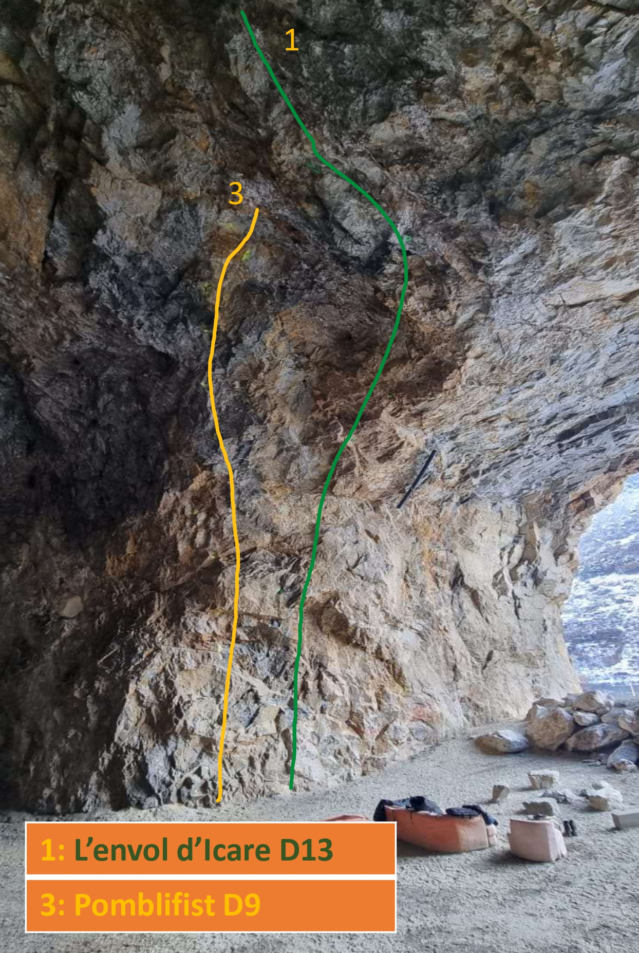 Le bord de la grotte passe au soleil en fin de journeé mais ne comptez pas vous réchauffer au soleil à l’aplomb de la grote car il y a des chutes de pierres du sommet de la falaise.