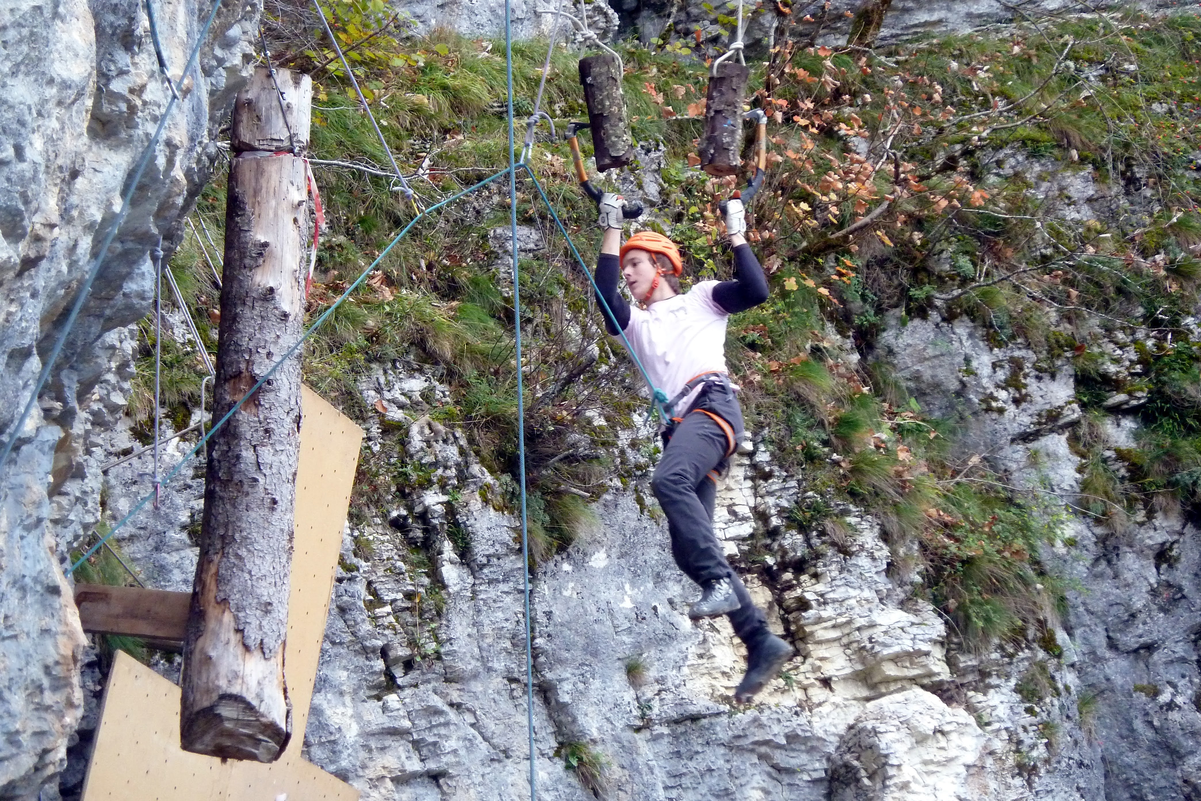 Variante qui traverse à gauche sur le gros pilier déversant D6