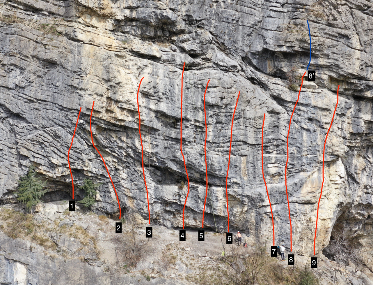Certaines voies sont équipées de dégaines fixes mais elles prennent le soleil toute l’année, donc méfiance et n’hésitez pas à les enlever et remplacer si besoin !